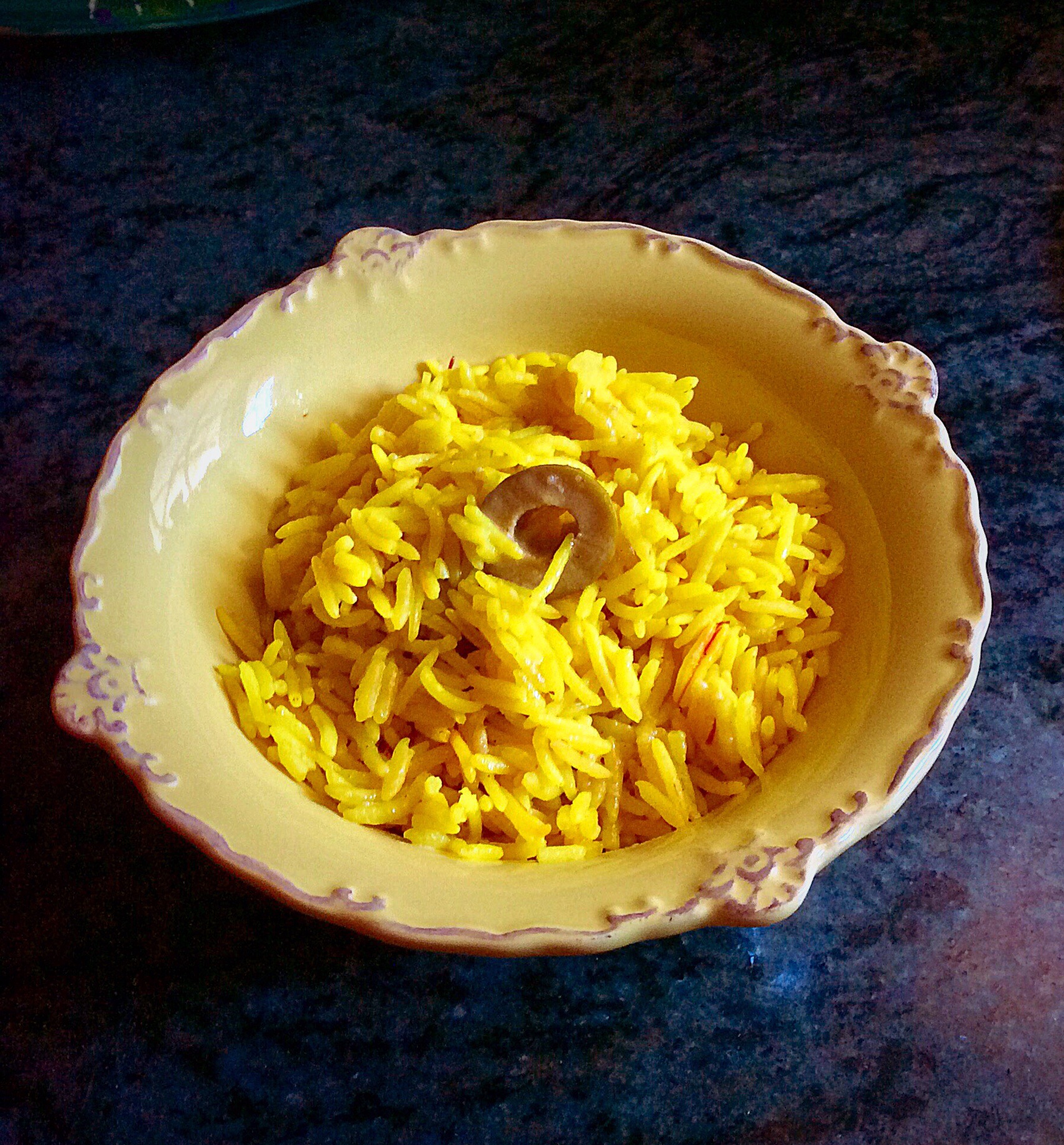 I served some really pretty yellow rice seasoned with Cajun or creole seasoning, chicken broth, fresh bay leaf and saffron…not sure what skinny rice really is , but follow the link it was a quick purchase for me as it was a convenient size. Oh and I lucked out with some wonderful organic red kale.